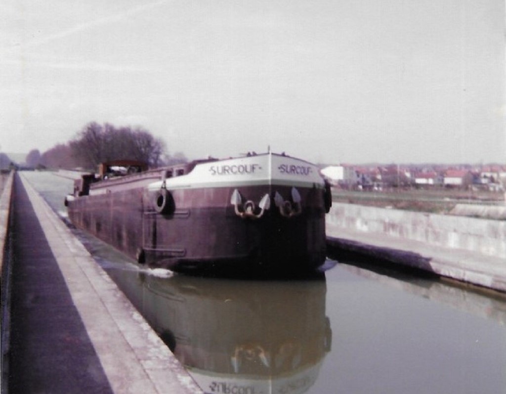Sur le Pont-Canal d'Agen (47), dernier voyage du SURCOUF suite à sa cessation d'activité en 1983