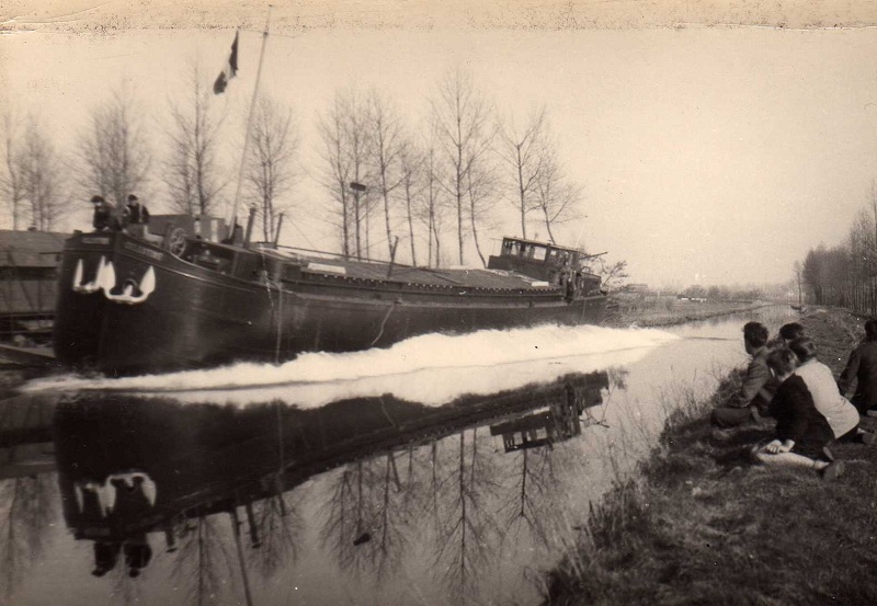 Le voici au tunnel de Moer sur le canal Courtrai_Bossuit, classé comme patrimoine industriel et inauguré en 1861. Ce tunnel n'existe plus car le canal a été élargi en 1971.