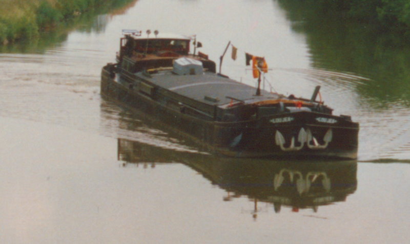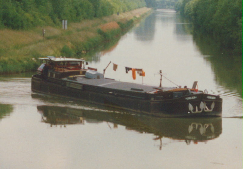 Je ne sais que la devise de cette peniche: LOUJEA, qui a ici fini le canal d`heuilley envers le sud en 1987.