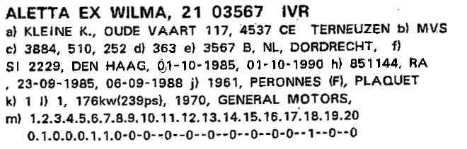 ALETTA ex WILMA , un Plaquet de Péronnes de 1961