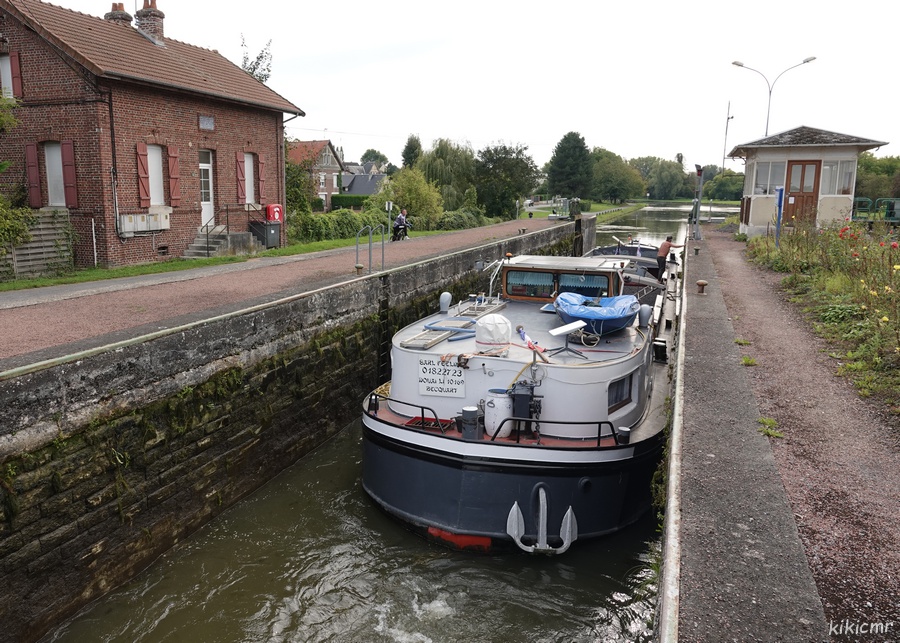 - en septembre 2021, à vide pour charger à Acy-Romance ; la photo a été prise à Vieux-lès-Asfeld (08), il est montant à l'aval de l'écluse, pile-poil à l'endroit où le canal latéral à l'Aisne, d'où il arrive, devient le canal des Ardennes :