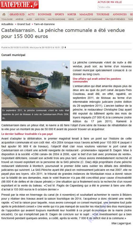 - tout d'abord, un lien vers un article du journal La Dépêche en date de ce jour, 20 octobre 2013 (