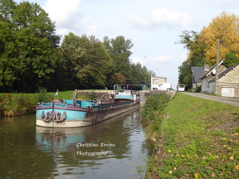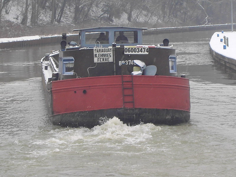 Le PARAGUAY entre dans l'écluse de Cannes-Ecluse, je ne peux pas mieux faire que d'aller le saluer, et de lui attraper les cordes...