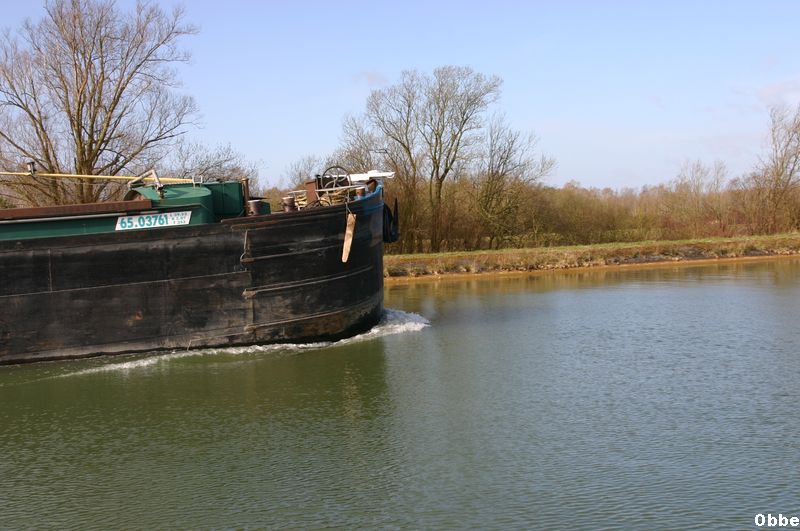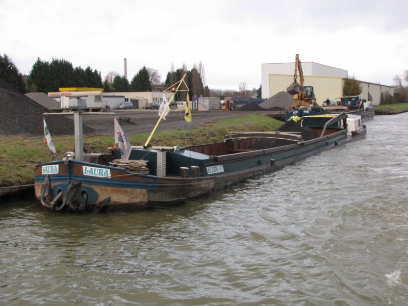 Voici le VOULU sur une cpsm prise à Vendhuile , c'est le chargé à droite. Sur cette même carte le MOREA vide à gauche , port d'attache:Gand