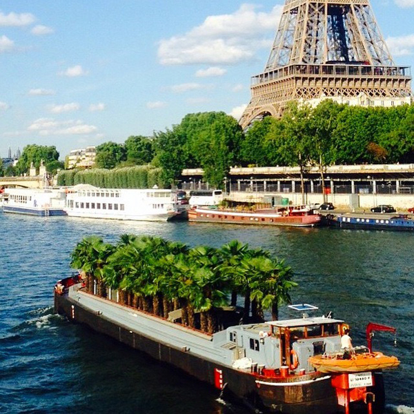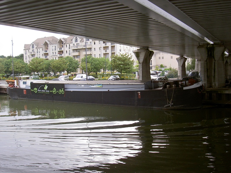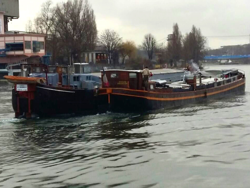 c'est un bateau-entrepôt qui se déplace sur la Seine avec sa flotte de triporteurs électriques. Un service "éco-responsable" tout à fait novateur et réservé aux professionnels.