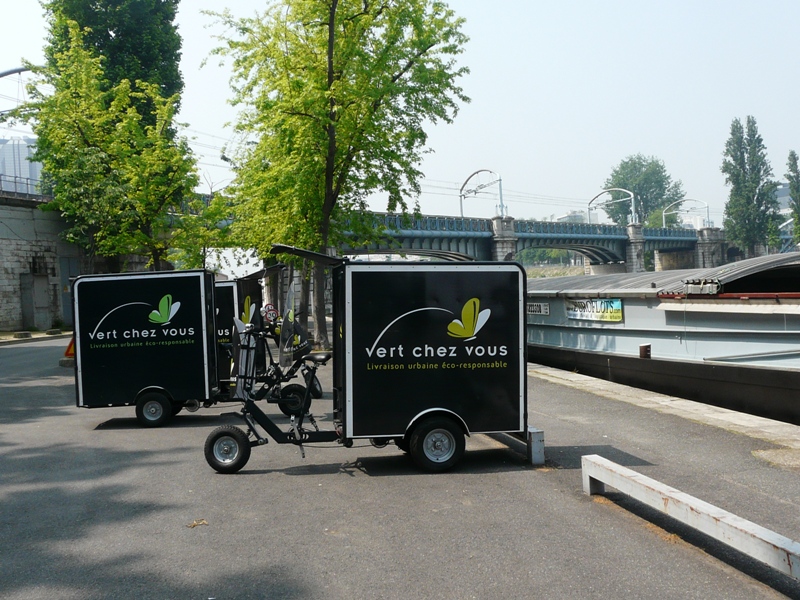 c'est un bateau-entrepôt qui se déplace sur la Seine avec sa flotte de triporteurs électriques. Un service "éco-responsable" tout à fait novateur et réservé aux professionnels.
