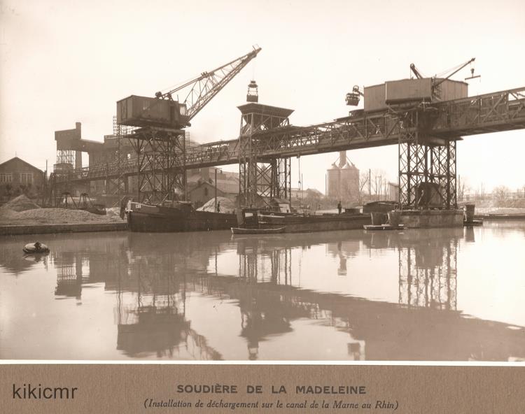 Soudière de La Madeleine - Installation de déchargement sur le canal de la Marne au Rhin.