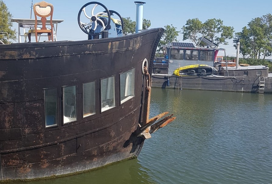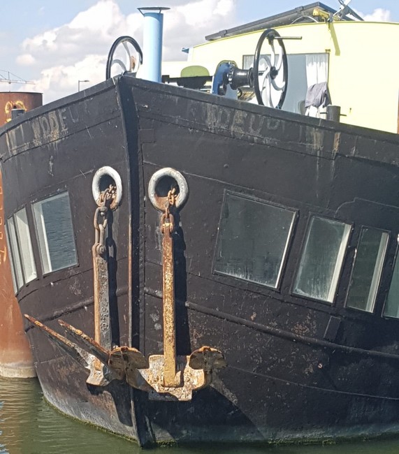 Après publication dans le groupe Facebook Spitsen & Canal du Nord schepen van diverse lengtes, je suis rentré en contact avec Jan Mandemaker, qui m'a donné quelques infos sur le bateau de ses parents : construit en 1893, à Bruges pense-t-il, et la photo a peut-être été prise en 1963 ou 1964. Et le bateau existe encore, en logement du côté d'Amsterdam, il m'en a envoyé des photos :