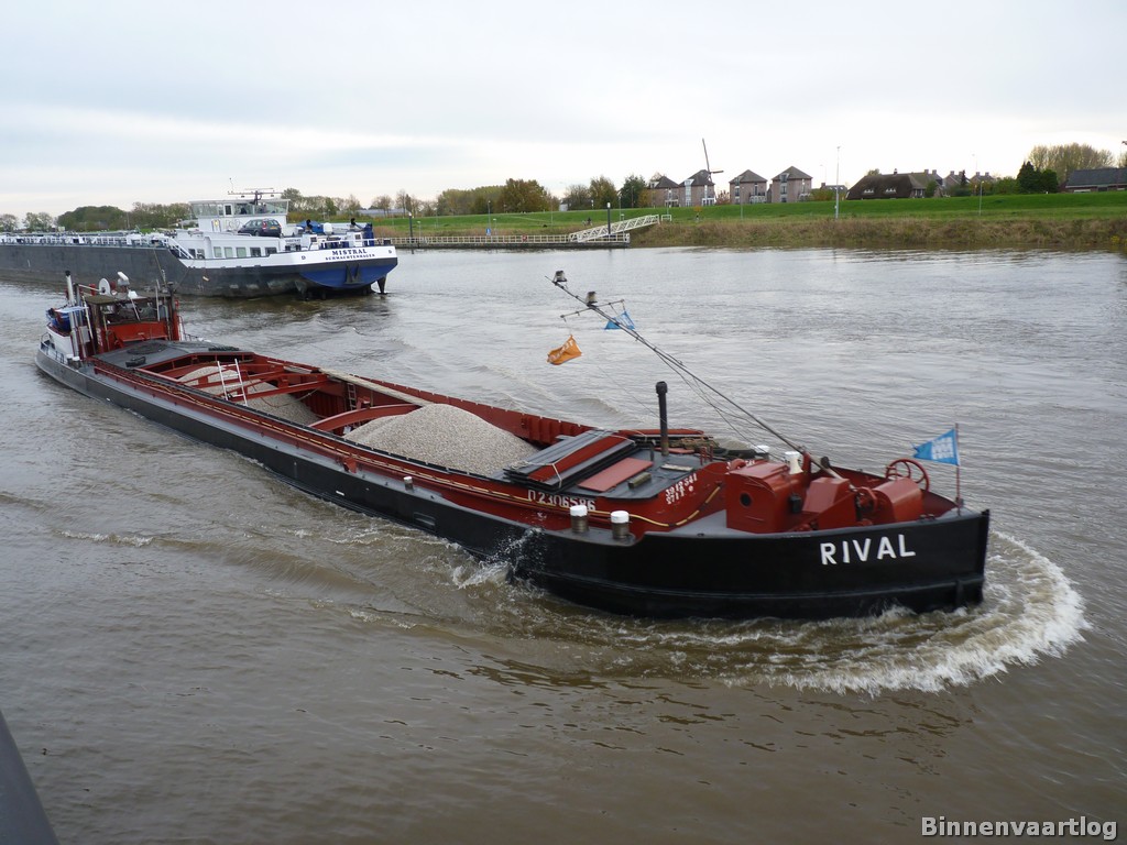 Rival , 39,12 x 5,41 x 2,35 , 271 ton , Bouwjaar 1925 , Werf De Noord in Alblasserdam , 167 pk DAF , ex De Tijd Zal ‘t Leren IV , ex Veendam 10 , ex Full Speed , eigenaar W.R.Versloot in Zaandam , ENI 02306586