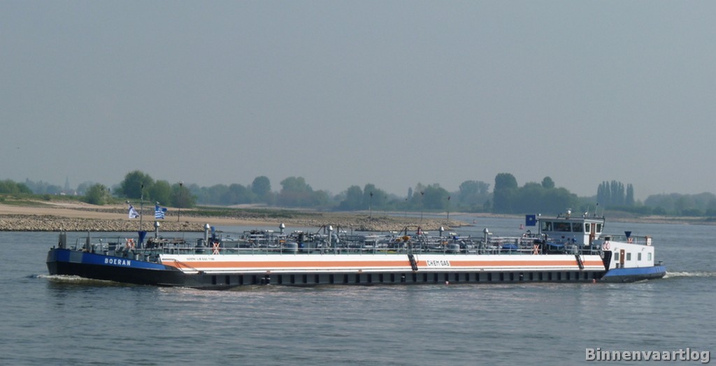 Boeran , 84,95 x 9,49 x 2,39 , 1185 ton , Bouwjaar 1969 , Werf Gebr.Boot in Alphen aan de Rijn , 660 pk Stork Ricardo en 446 pk Scania – Veth-Jet boegschroef , ex Belgia , eigenaar Chemgas BV in Rotterdam , ENI 02312781