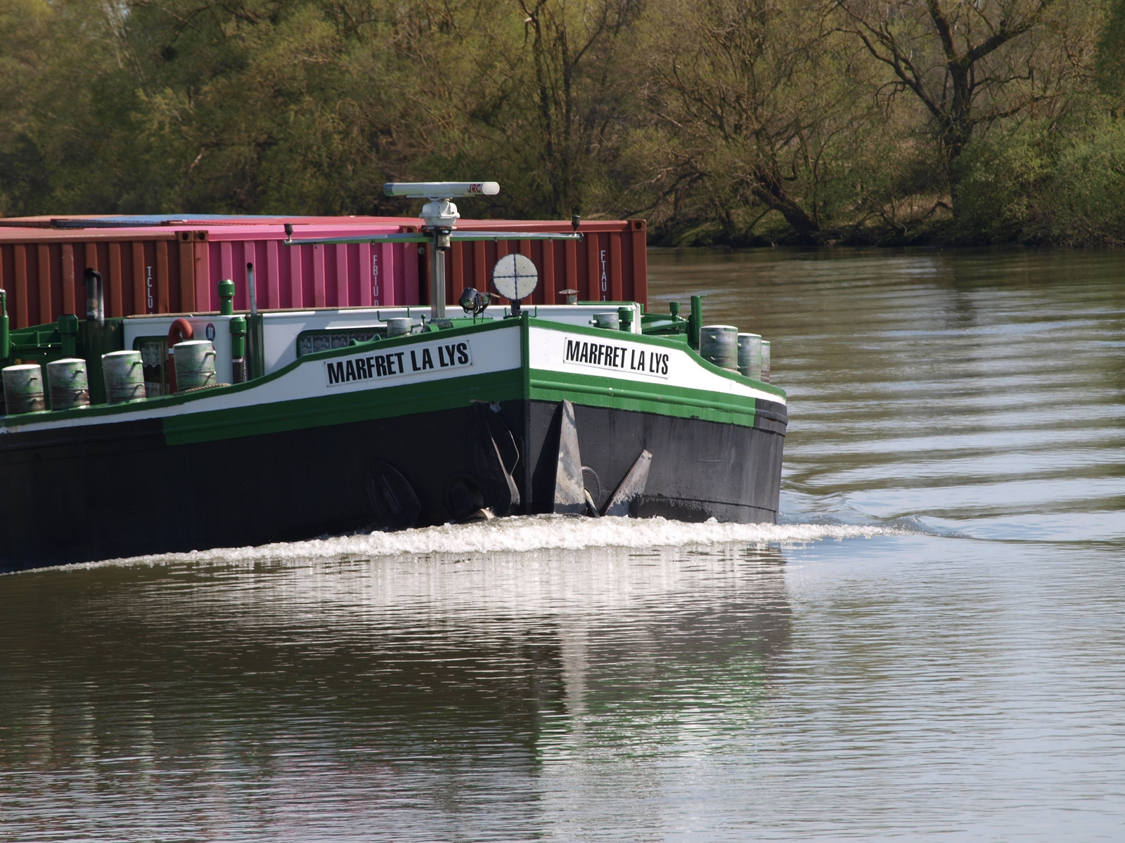 A l'amont de l'écluse de Varennes sur Seine , le bateau a chargé du fil à machine à Montereau.