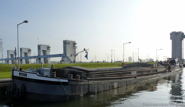 Ariës , 49,90 x 6,60 x 2,46 , 551 ton , Bouwjaar 1930 , Werf Gebr. Boot in Delft ( Nederland ) , 350 pk DAF en 219 pk DAF – Ballegooy boegschroef , ex Louise , ex Zes Gebroeders , ex Fatima , ex Aqua Filia , ex Spera , ex Erato , ex Ariës , eigenaar H.J.M. van Vugt in Wessem , ENI 02304893