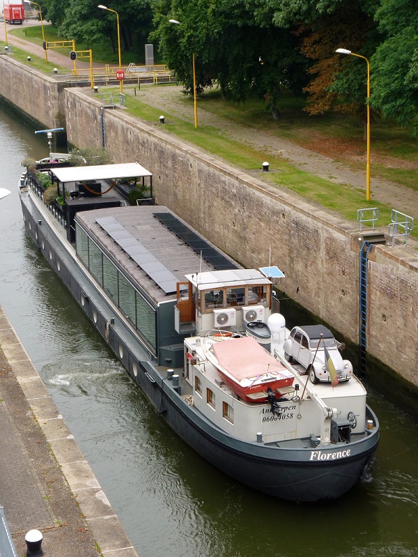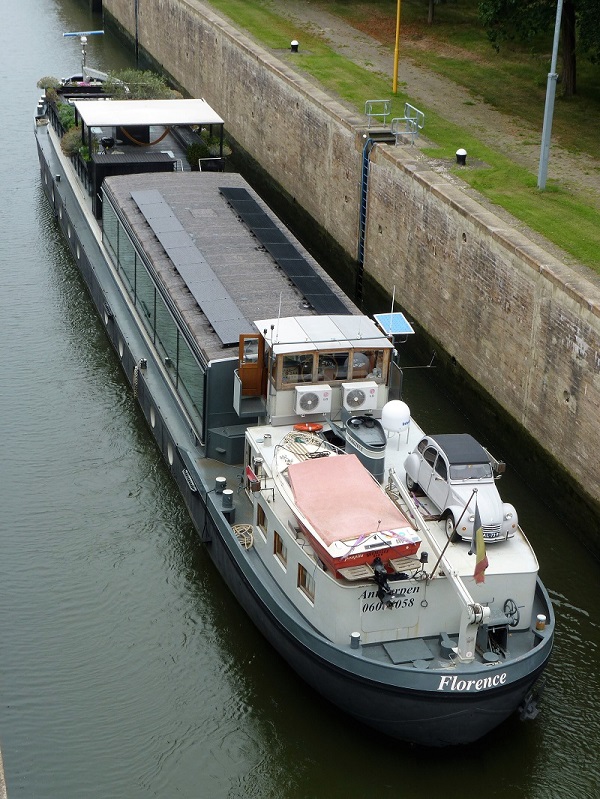 Florence , 54,98 x 6,58 x 2,35 , Bouwjaar 1955 , Werf J. Hendriks in Dodewaard ( Nederand ) , 250 pk Bolnes , ex Brunswijk , ex Nivoma , ex Cingaro , eigenaar ? in Antwwerpen , ENI 06004058