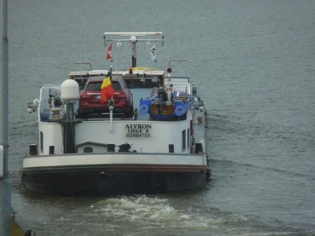 Alyron , 57,96 x 6,57 x 2,34 , 561 ton , Bouwjaar 1955 , Werf Hendriks in Dodewaard ( Nederland ) , 450 pk Caterpillar en 165 pk DAF – Kalkman boegschroef , ex Bergwijk , ex Fortuna , ex Aura , eigenaar Vostier in Liege , ENI 02004753