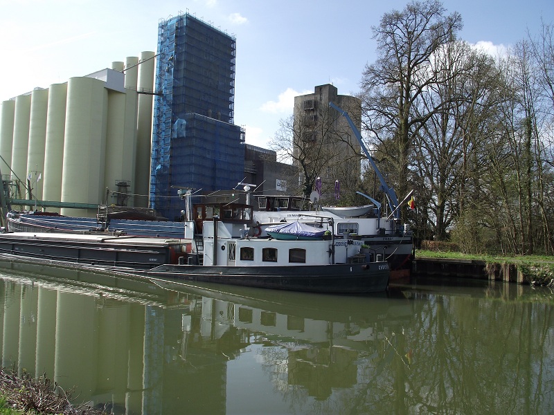 Hélas ici , il est amarré à la malterie de Wijgmaal, canal de Louvain. Comme il est interdit de pénétrer sur le chantier, je n'avais que des photos de l'arrière