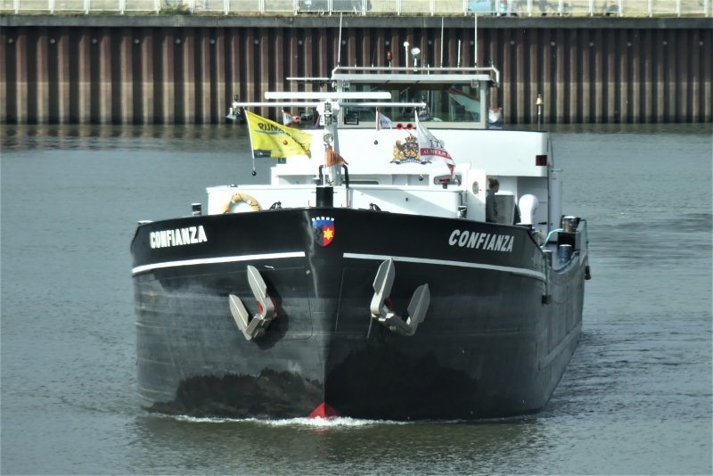 Confianza, 69,75 x 8,20 x 2,91 , 1075 ton , Bouwjaar 1965 , Werf Ferus Smit in Foxhol ( Nederland ) , 450 pk Industrie , en 240 pk DAF boegschroef , ex Gouwestad , ex Stella Maris , ex Stentor , ex Risico , eigenaar SVO Confianza in Slidrecht , ENI 02204029