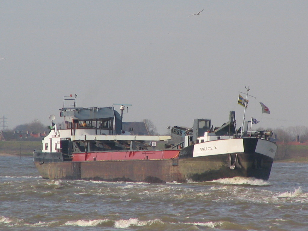 Energie X , 62,50 x 8,32 x 2,92 , 907 ton , Bouwjaar 1965 , Werf Vahali in Gendt ( Nederland ) , 551 pk Deutz , eigenaar Moorslag BV in Arnhem , ENI 03150452
