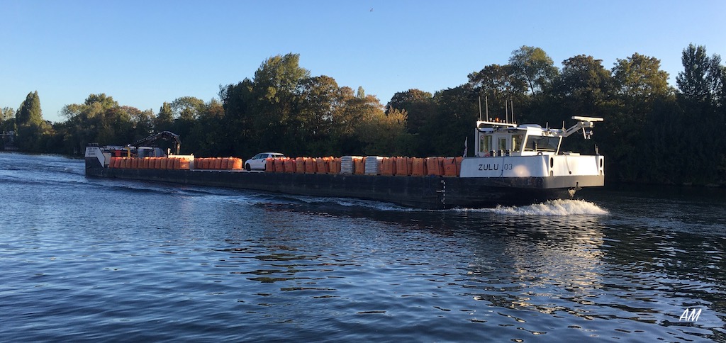 Voici un nouveau type de bateau vu pour ma part à Bonneuil. Bateau construit en 2018 mesurant 50m de long pour 6m60 de large.