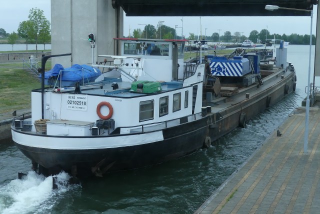 René , 53,50 x 7,34 x 2,77 , 587 ton , Bouwjaar 1949 , Werf De Haan & Oerlemans in Heusden ( Nederland ) , 273 pk Scania en 212 pk Boegschroef DAF , ex Dordrecht 9 , ex Romania , ex 2 x Beveland , ex Robert , eigenaar C. Kornet in Sliedrecht , ENI 02102518