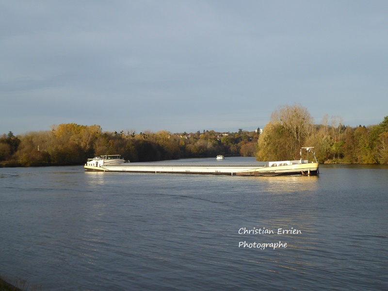 Le voici en navigation , pris ce matin depuis le pont et face au marché hebdomadaire. Les commerçants jouissent d'une vue extraordinaire ....