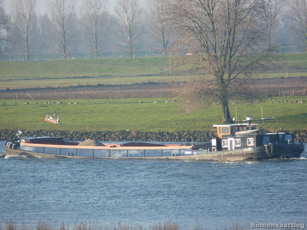 Romi , 49,91 x 6,60 x 2,19 , 505 ton , Bouwjaar 1913 , Werf , Smit in Kinderdijk ( Nederland ) , 165 pk Detroit , ex Lily , ex Romi , eigenaar Stobbe in Maasbracht , ENI 03320188