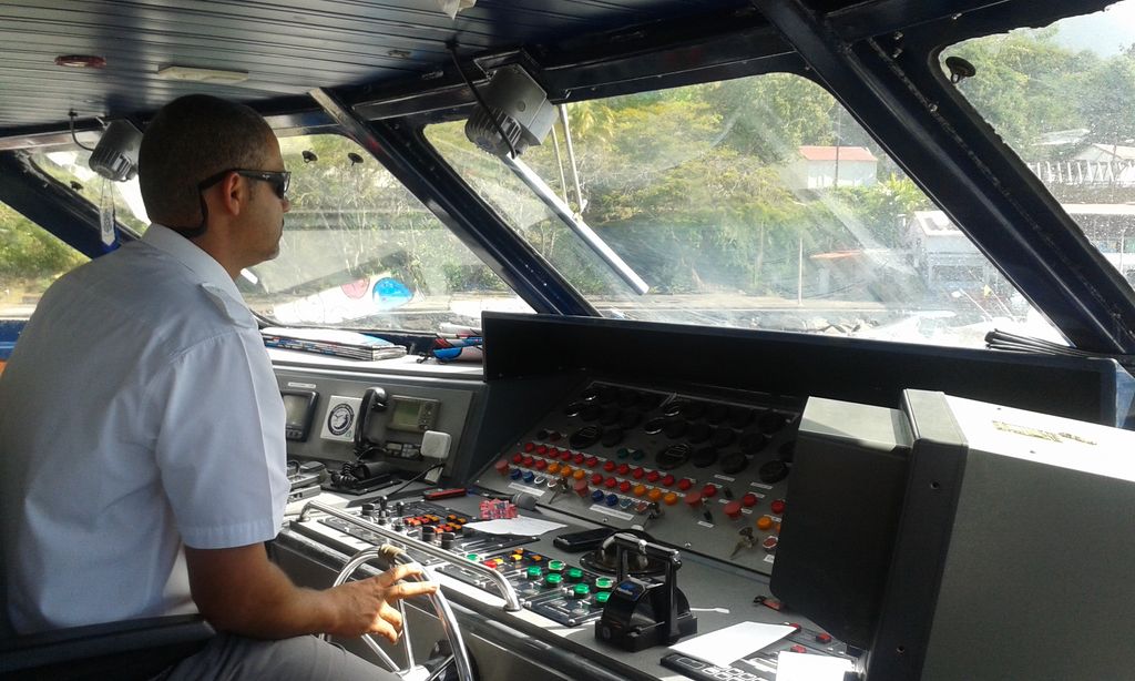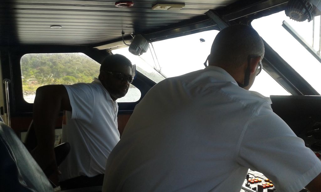 Baron a effectué la traversée (14 km ) de Trois-Rivières aux Saintes (Terre-de-haut) dans le poste de pilotage.