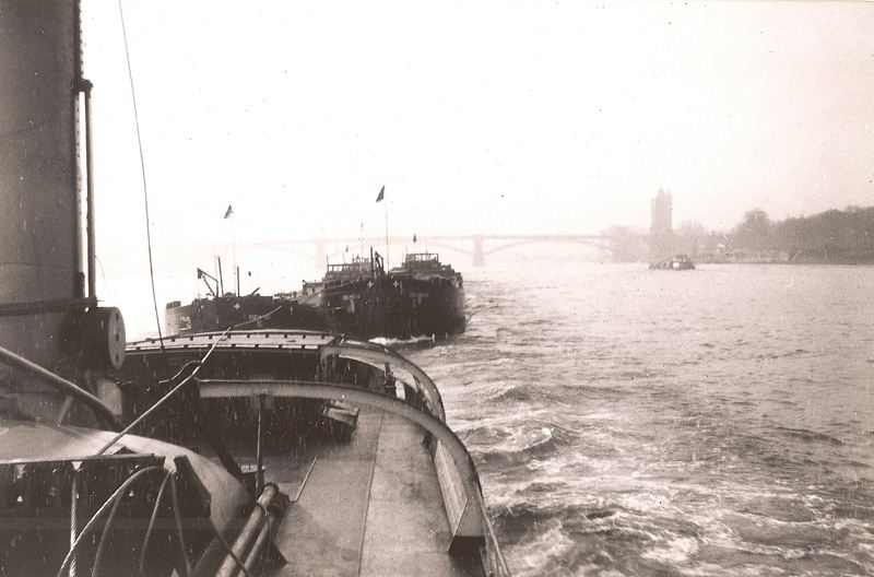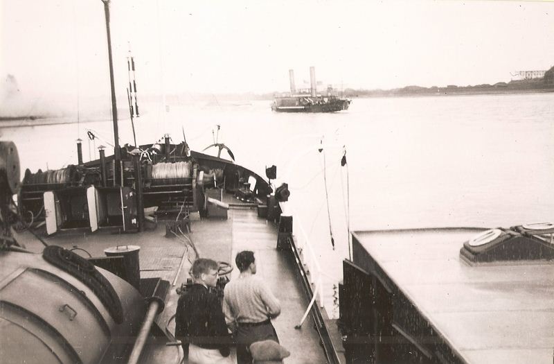 Voyage dans l'espace (pas au bout du monde, quand même !), mais surtout, voyage dans le temps... Les photos qui suivent nous emmènent en effet sur le Rhin, dans les années 1930-1940, sur un remorqueur à vapeur, à roues à aubes, tirant son convoi de chalands sur le fleuve majestueux...