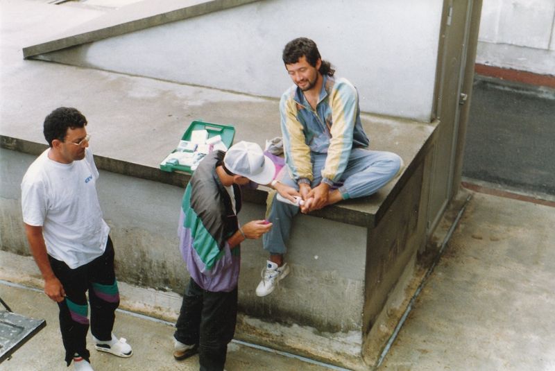 Nous partons, ouf et dans le canal de Pierre-Bénite, Sylvain s'ouvre le pied sur un morceau de verre.Le moral au plus bas, malgres tout, Il continue.