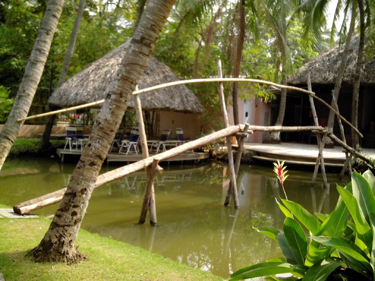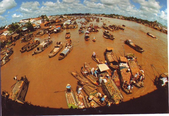 Sur cette photo... on ne voit pas trop, mais en fait le "marinier" actionne une helice a partir d'un moteur de mobylette....