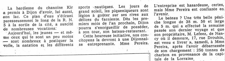 Dijon (Côte-d'Or) - Lac chanoine Kir - Péniche en station. Au fond, Talant. septembre 1971