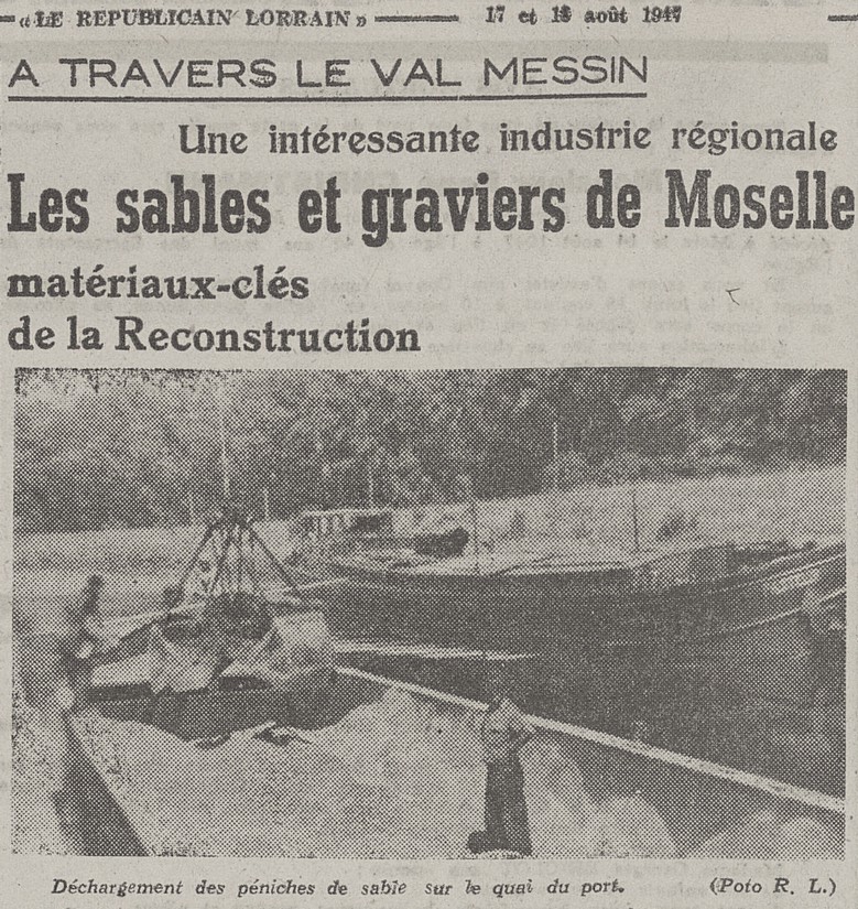 Rivieres et Canaux du monde, deux bateaux amarrés à Roanne, vers 1983, chargés de sel de déneigement venant de Mulhouse ou Ottmarsheim ; au large, le