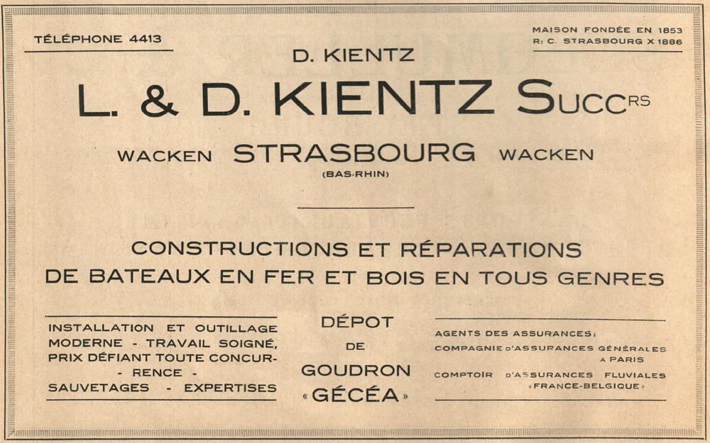 Dans la revue « Le Yacht : journal de la navigation de plaisance » n°2665 du samedi 21 avril 1934, on trouve cette photo du cul d'un automoteur en construction aux chantiers L&D Kientz de Strasbourg :