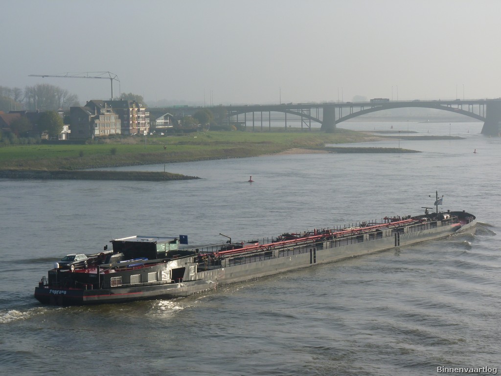 Soprano , 109,00 x 11,34 x 4,00 , 3499 ton , Bouwjaar 1987 , Werf De Hoop in Lobith ( Nederland ) , 1627 pk ABC , ex Brigitte , ex Aquamarine , ex River Kwai , eigenaaar R.Kusters in Smachtenhagen , ENI 02327609