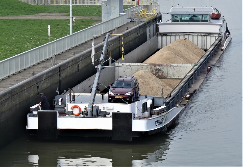 Graveland , 85,00 x 9,49 x 3,17 , 1599 ton , Bouwjaar 1987 , Werf De Hoop in Lobith ( Nederland ) , 862 pk Mitsubishi en 300 pk Mitsubishi – van Wijk boegschroef , eigenaar Vonk’s Handels- en Transportmaatschappij in Arnhem , ENI 02318351