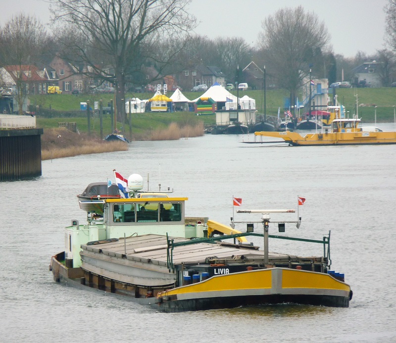 Livia , 54,98 x 7,25 x 2,65 , 699 ton , Bouwjaar 1963, Werf De Hoop in Lobith ( Nederland ) , 740 pk Deutz , ex Nomade , ex Batavorum , eigenaar Wildenbeest in ? , ENI 03150411