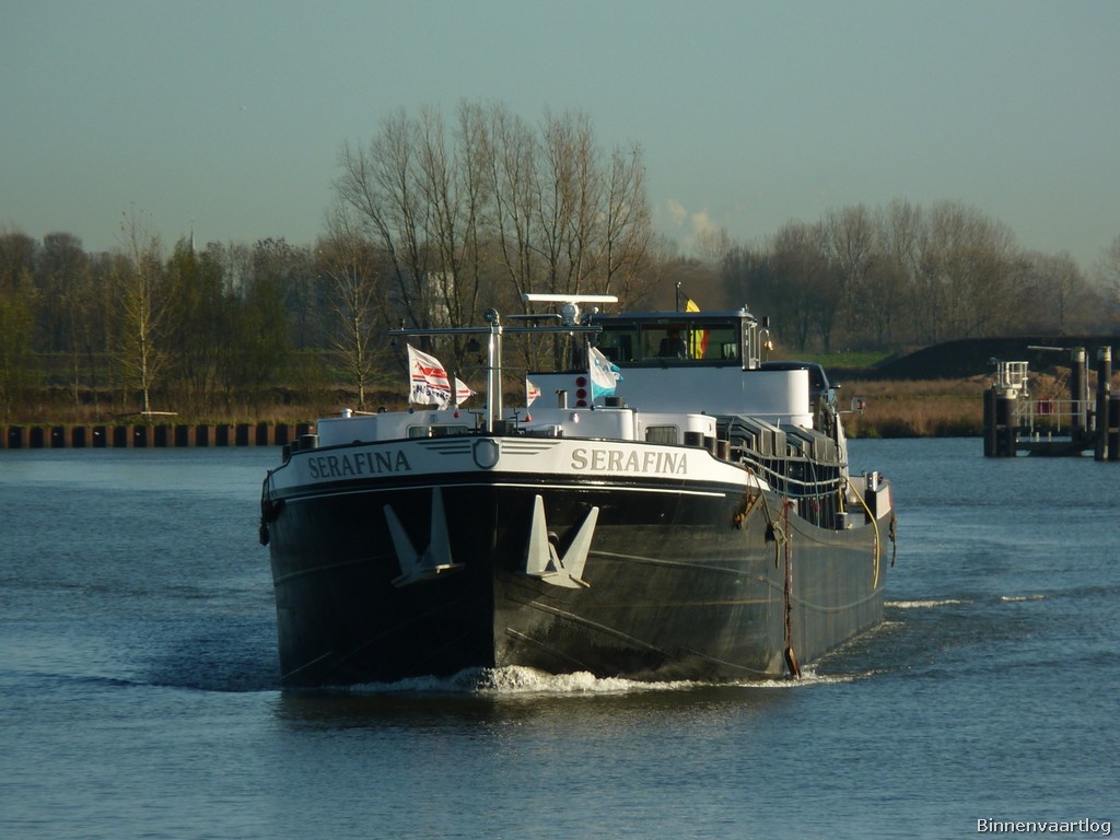 Serafina , 79,97 x 8,20 x 2,72 , 1174 ton , Bouwjaar 1963 , Werf Van Goor BV in Monnickendam ( Nederland ) , 1197 pk Mitsubishi en 188 pk DAF boegschroef , ex Willem Pieter , ex Burgwal , ex Frear-L , ex Impala , eigenaar K. Francois in Brugge , ENI 03110571