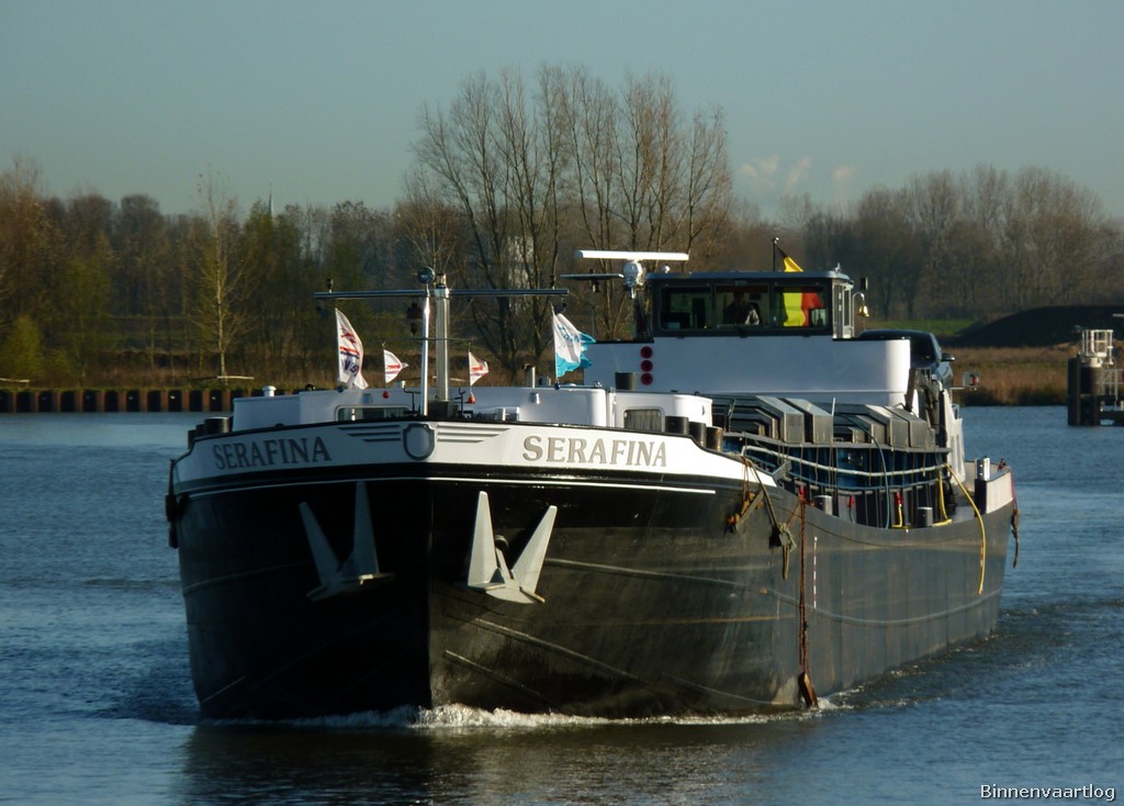 Serafina , 79,97 x 8,20 x 2,72 , 1174 ton , Bouwjaar 1963 , Werf Van Goor BV in Monnickendam ( Nederland ) , 1197 pk Mitsubishi en 188 pk DAF boegschroef , ex Willem Pieter , ex Burgwal , ex Frear-L , ex Impala , eigenaar K. Francois in Brugge , ENI 03110571
