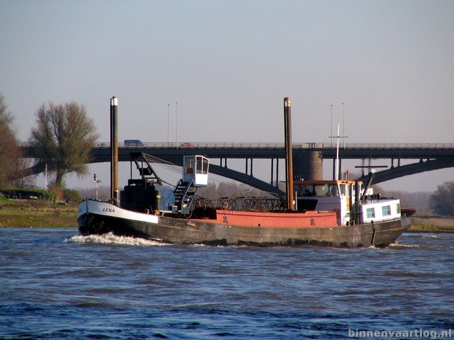 Lena , 36,13 x 6,30 x 2,40 , 264 ton , Bouwjaar 1927 , Werf Huys de Merwede in Papendrecht ( Nederland ) , 230 pk GM , ex Lena , ex Njord , ex Corja , ex Lawi , ex Hercules , eigenaar Koning.E.VOF in Wadenoyen , ENI 02303903