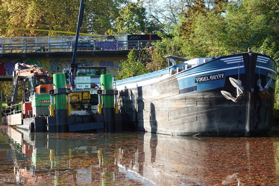 En voici ! Sur ces photos de la semaine dernière, il est à l'amont de l'écluse n°84 d'Illkirch-Graffenstaden (67), sur le canal du Rhône au Rhin, pour un chantier de dragage qui a débuté la semaine précédente à l'aval de l'écluse n°85 et doit se poursuivre jusqu'à fin novembre, pour atteindre Plobsheim.