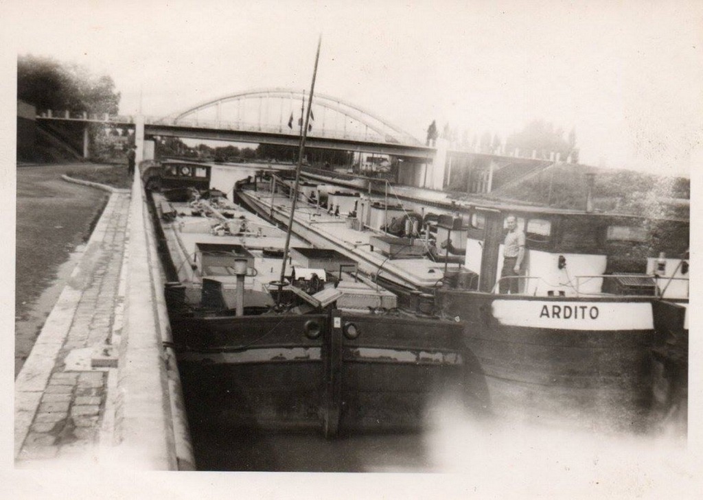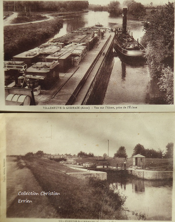 La première carte avec le remorqueur AIGLON était déjà sur le forum , à sa gauche un chaland non identifié sauf qu'avec le seconde carte prise avant on voit un chaland immatriculé P8503F avec un petit morceau de devise visible (COL) donc au final COLOMBES.