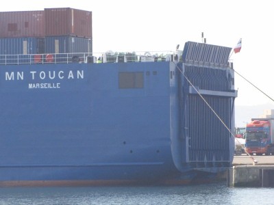 le pousseur INTRAITABLE avec une barge RORO qui vient du HAVRE et se rend aux MUREAUX avec un colis qui decoiffle