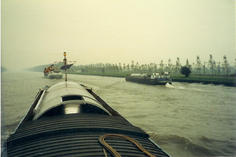je vous joint les photos d'un transport exceptionnel que j'ais effectué en 1985 avec un collegue holandais ,il s'agit d'un chargement de deux silos en alluminium de 12m60 de long pour un diametre de 4m04 et d'un poid de 2t750 chargé a Zandaam (banlieu d'amsterdam) a destination de salaise sur sanne (rhone) avec un lest de 80 t de sable pour passé sous les ponts du petit gabarit