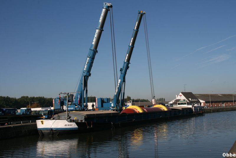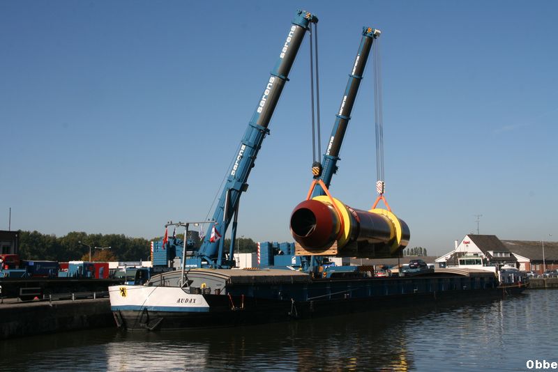 Comme promis la suite du transport Lyon Anvers par le JOSIANE plus la petite grue pour le déchargement