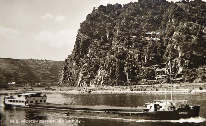 voici une jolie cpsm du BOSCO sur le Rhin . D'après Binnenvaart on apprends que ce bateau a été construit en 1940 au chantier De Groot & Van Vliet à Slikkerveer c'est le n°233. (86m19x9m48/1300t)