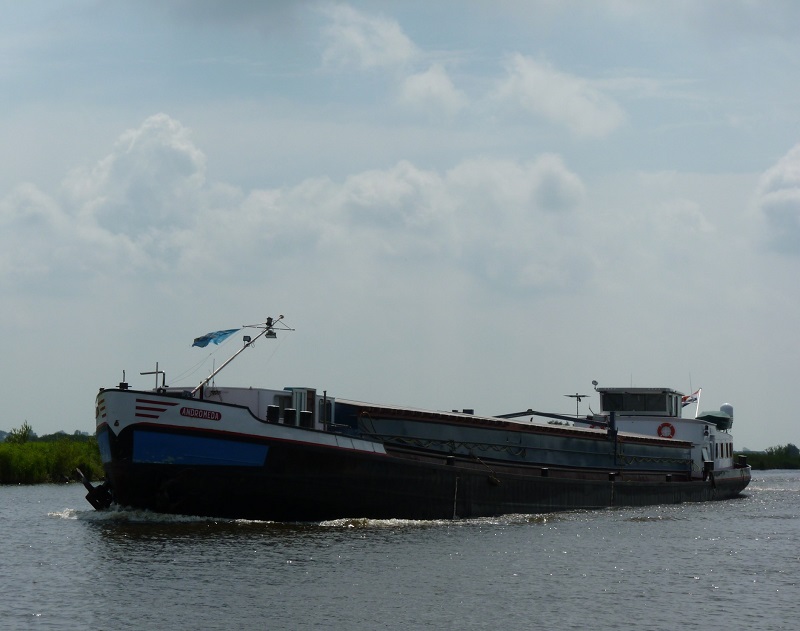 Andromeda , 66,98 x 7,45 x 2,50 , 799 ton , Bouwjaar 1949 , Werf De Groot & van Vliet in Slikkerveer ( Nederland ) , 624 pk Caterpillar , ex Valbella , ex Austria 3 , ex Valtanna , ex Nomadisch , eigenaar J.Sijbranda in Leeuwarden , ENI 02205110