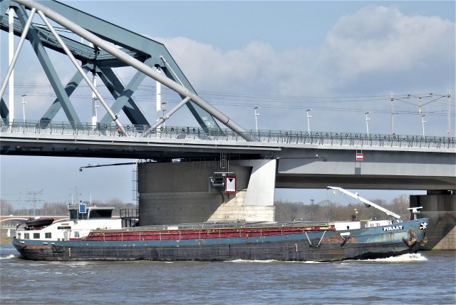 Piraat , 60,52 x 7,58 x 2,55 , 689 ton , Bouwjaar 1965 , Werf Sneker Scheepsbouw Unie in Sneek ( Nederland ) , 600 pk MTU , ex Zeus , ex Warber , eigenaar A. Springer in Westervoort , ENI 03270702