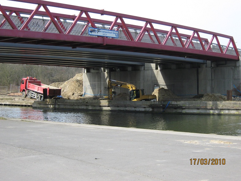 Le bruit est celui de la pelleteuse qui travaille à l'aménagement de la berge en dessous du pont.Sorry