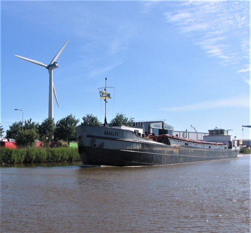 Amalfi , 69,95 x 8,21 x 2,85 , 938 ton , Bouwjaar 1962 , Werf G. Bijlsma & Zn. in Wartena ( Nederland ) , 450 pk Bolnes , eigenaar Vof. Feenstra Zandzuig & Overslag in Harlingen , ENI 03270629