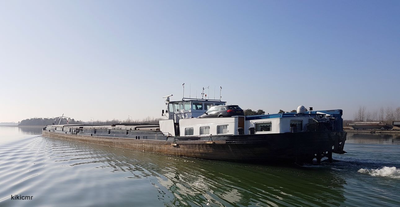 Gabarit "Rhein-Herne Kanal", ou Johann Welker, montant sur le Rhin canalisé à Marckolsheim (67), février 2017 :