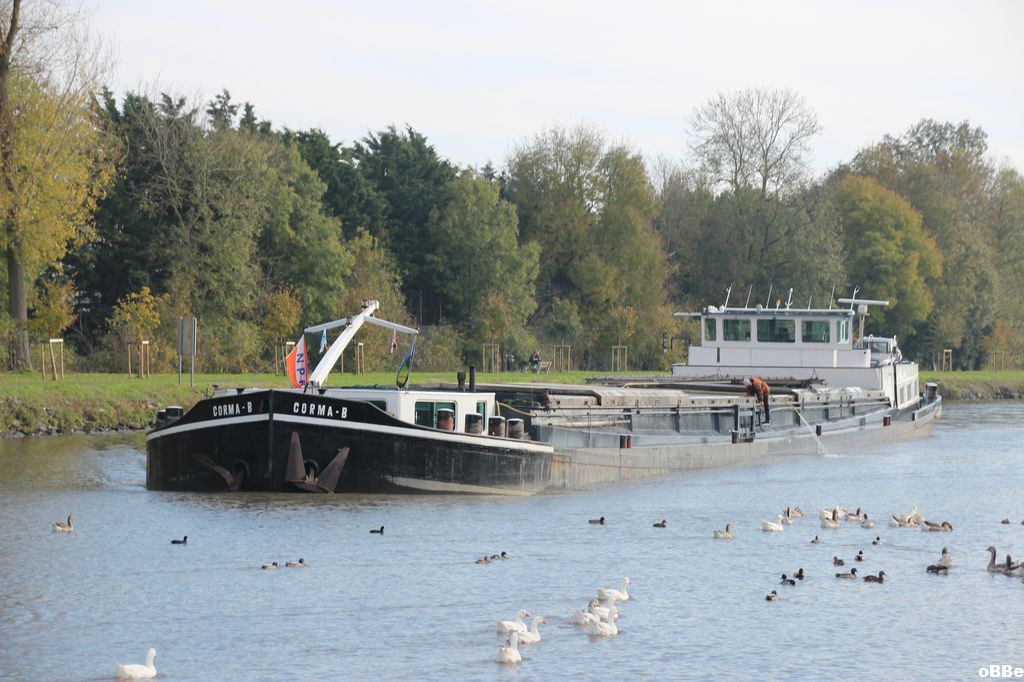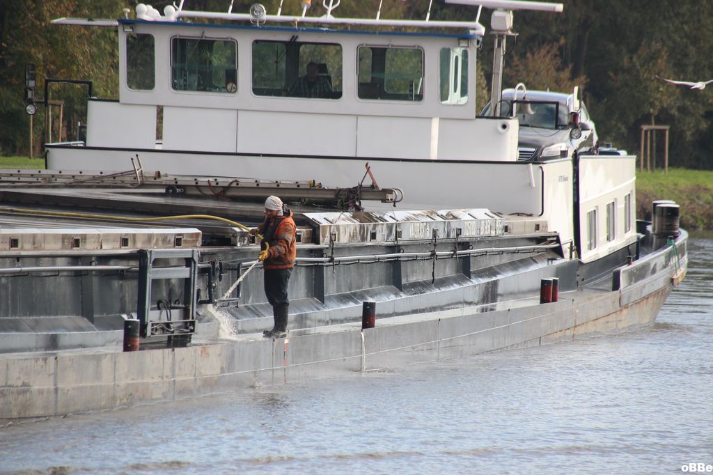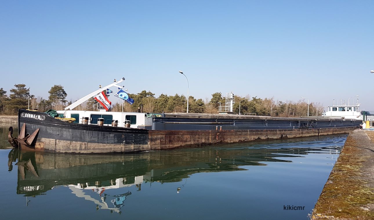 Gabarit "Rhein-Herne Kanal", ou Johann Welker, montant sur le Rhin canalisé à Marckolsheim (67), février 2017 :